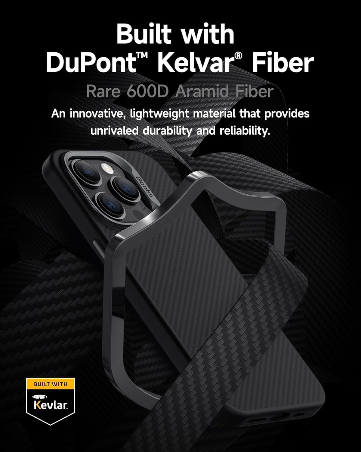 Made with DuPont Kevlar fiber, Benks Armor Case offers robust protection and minimalistic style for your Phone. Protect your phone in style with this sleek and durable mobile cover. Designed to provide a snug fit for your device, it offers full protection against scratches, bumps, and accidental drops. The cover is made from premium-quality material, ensuring durability and long-lasting use, while the smooth, matte finish adds a touch of elegance to your phones appearance.