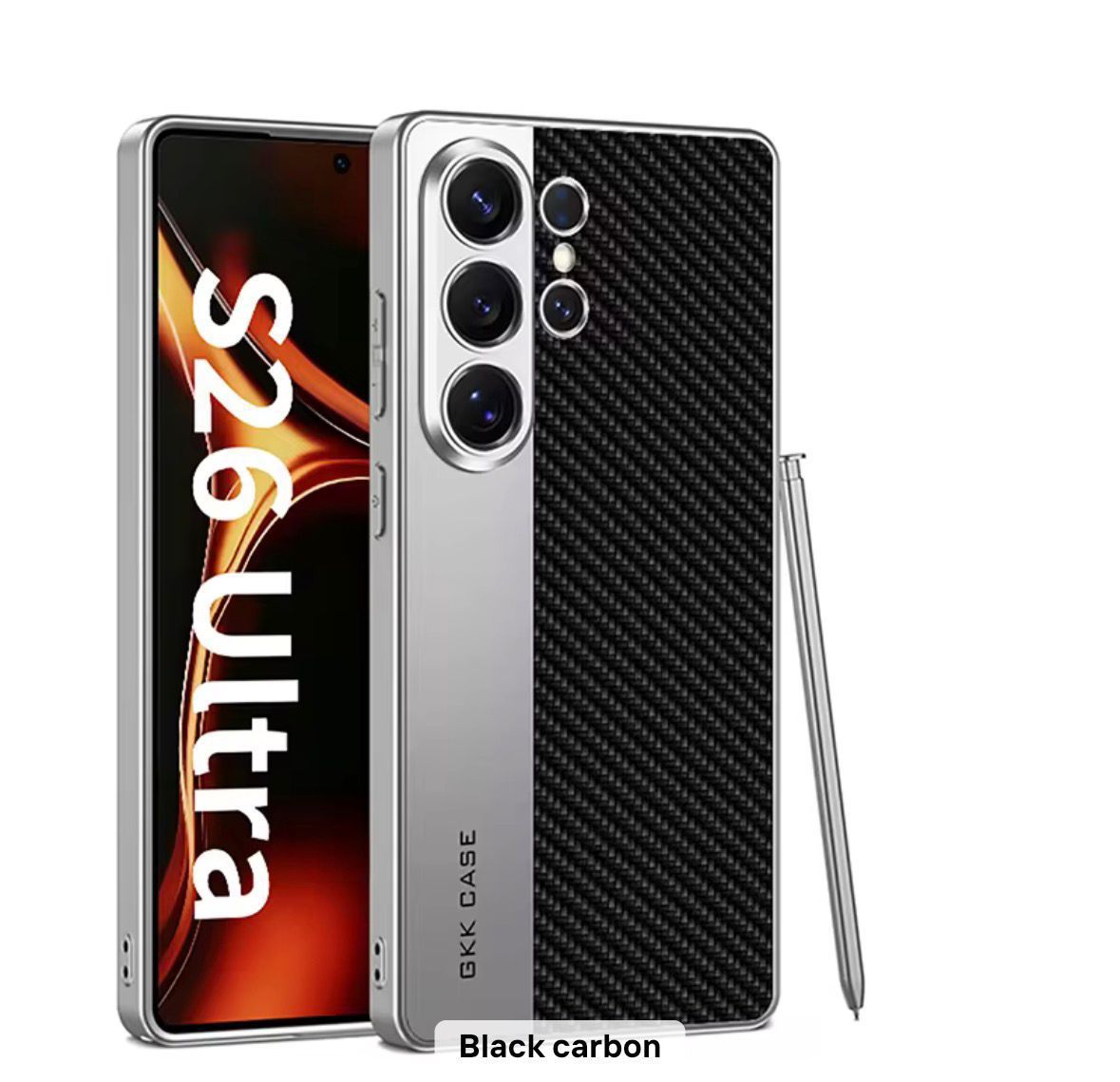 GKK Premium Half Leather Lens Protection Case for Samsung S26 Ultra – 360° Hard Armor | Slim Luxury Back Cover – Black Carbon