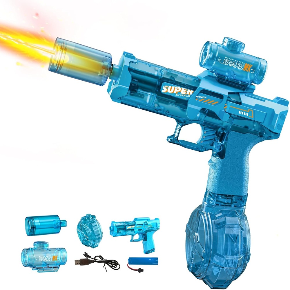 • ELECTRIC POWERED WATER SHOOTING – Smooth electric firing for effortless and exciting water play.