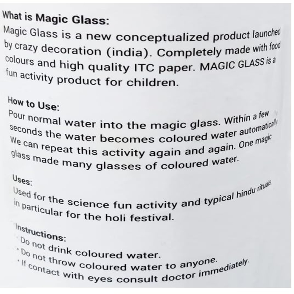 • COLOR CHANGING MAGIC – Add water and watch the glass change color instantly for fun surprise effect.