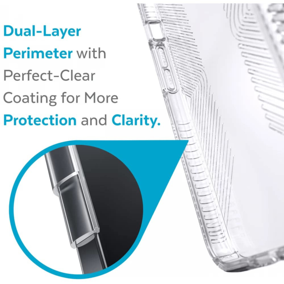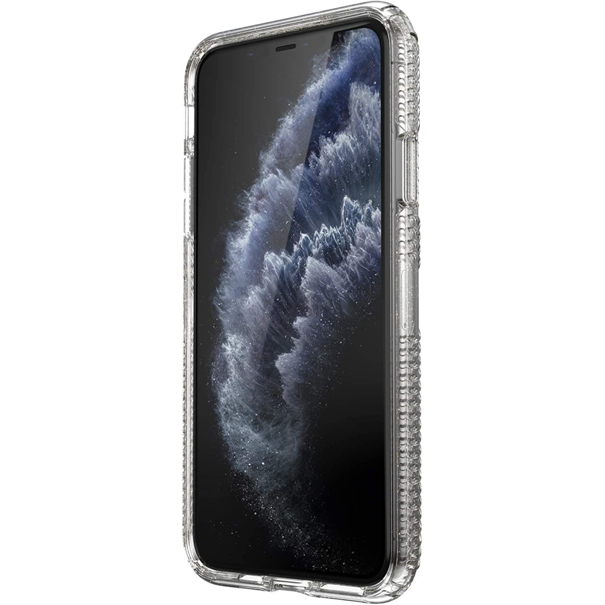 Protect your phone from bumps and dings with the Presidio Clear GRIP Case for iPhone. This translucent case features Speck’s Clear coating prevents yellowing and discoloration so your case stays clear. Clear Impact technology and raised-bezel screen protection shields against drops up to 13 feet. No-slip inverted grips make it easy to keep hold of your phone while on the go. Slim design allows for easy wireless charging. It also has an antimicrobial treatment from Microban that gives a 99% reduction in stain and odor-causing bacteria on the case, creating a cleaner surface. If that wasn’t enough, it also features our raised bezel. This added edge helps protect your screen from scratching and shattering if, and/or when your phone falls and lands face-down.