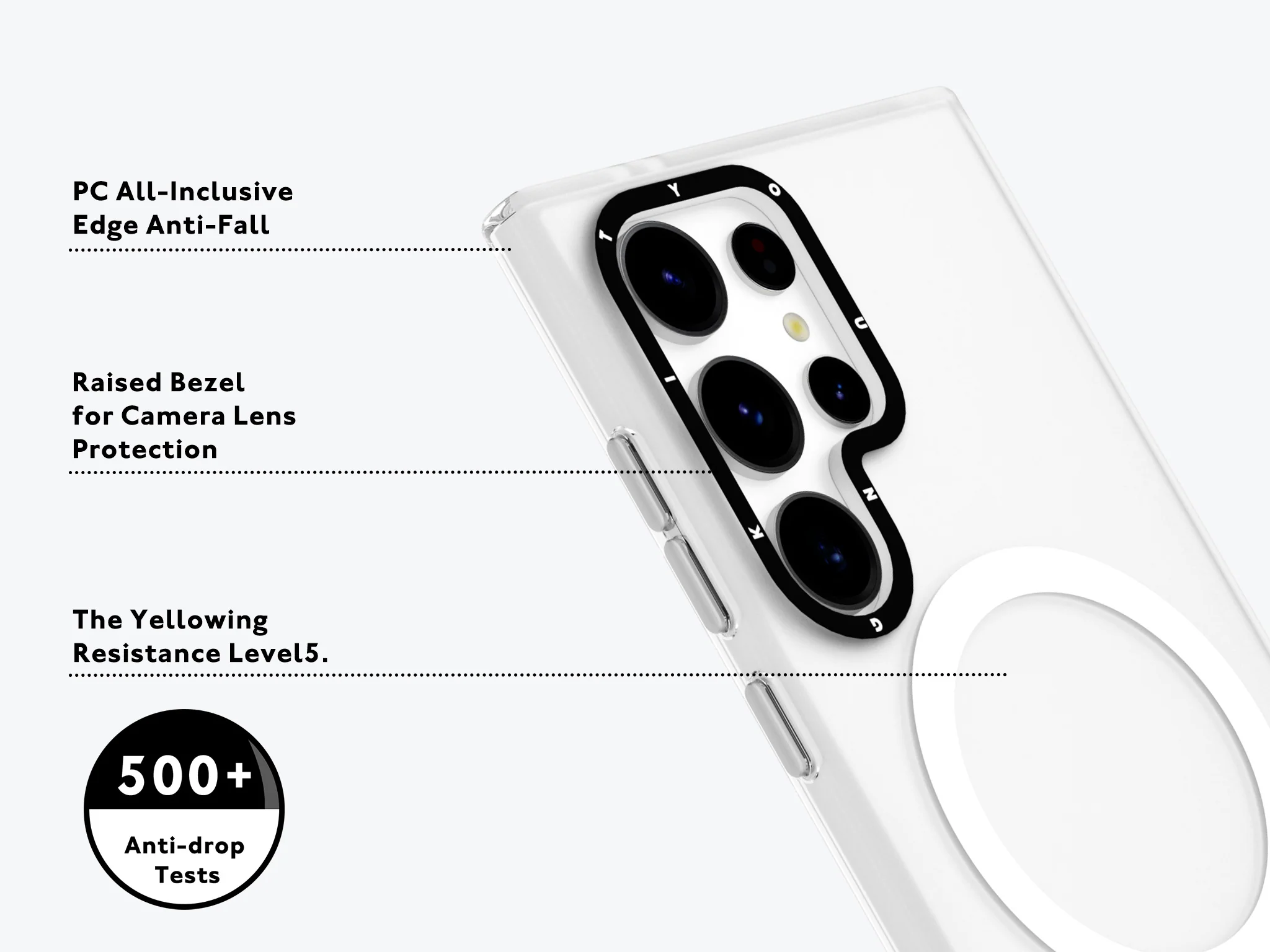 This series adopts the new full-touch all-directional protection technology, which has the characteristics of high elasticity and effective shock absorption, which can absorb the impact force at the moment of the phone falling, without dead Angle to protect your phone.