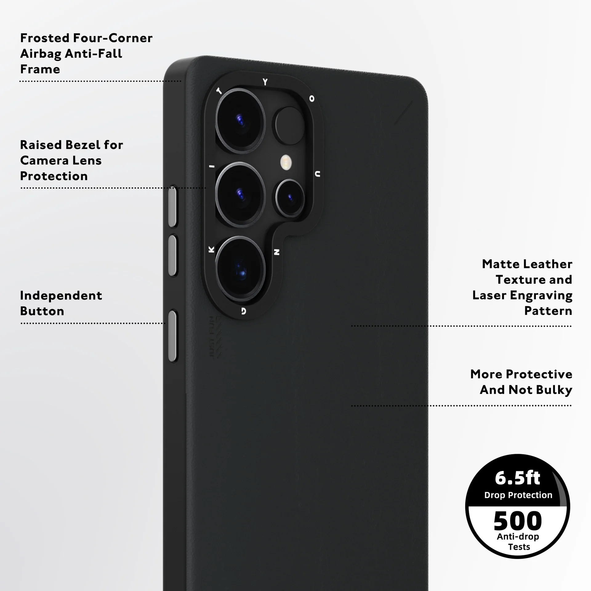 A fusion of cutting-edge technology and exquisite craftsmanship, designed for modern minimalists. The matte leather texture is combined with precision laser engraving patterns to ensure durability and luxury. The anti-smudge and oil-proof finish keeps your phone flawless, perfect for those who appreciate both style and high performance in their accessories.
