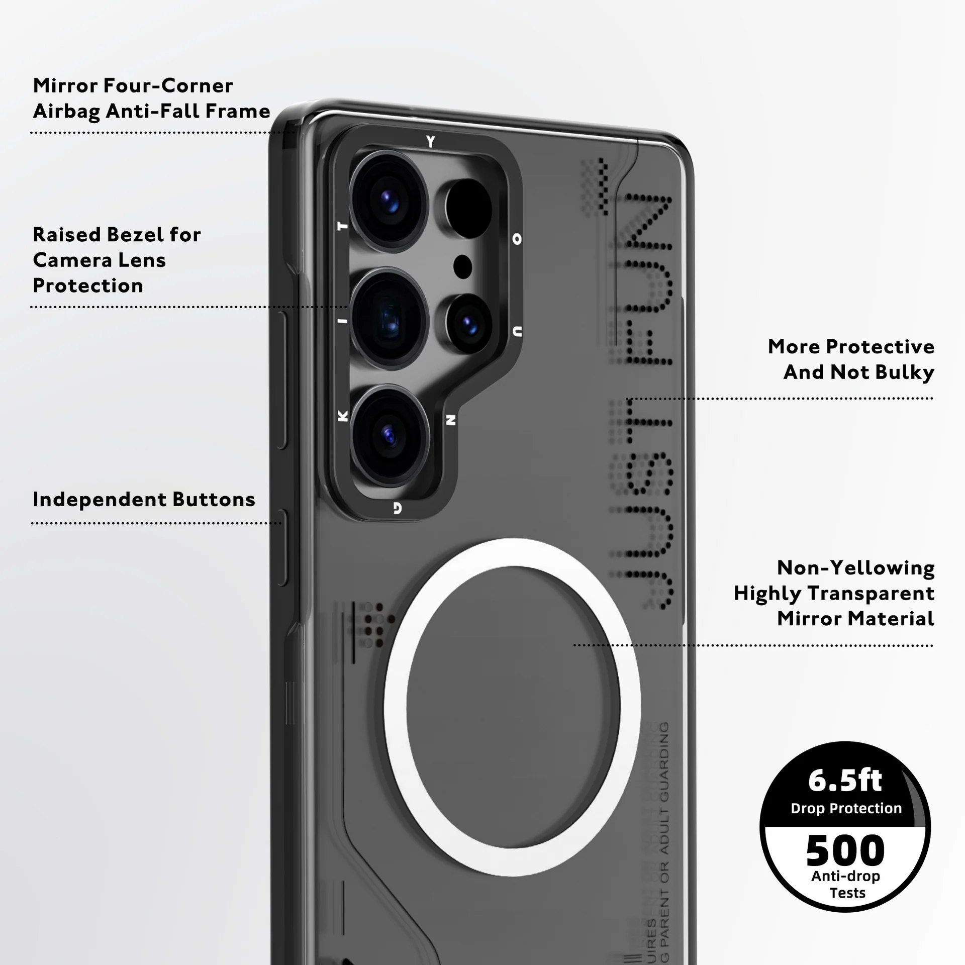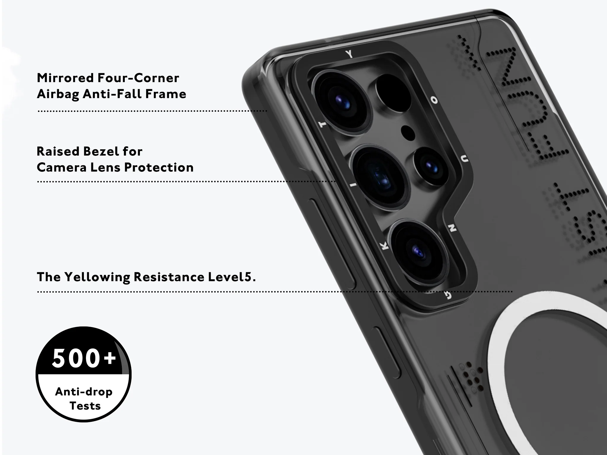 This series adopts the new full-touch all-directional protection technology, which has the characteristics of high elasticity and effective shock absorption, which can absorb the impact force at the moment of the phone falling, without dead Angle to protect your phone.